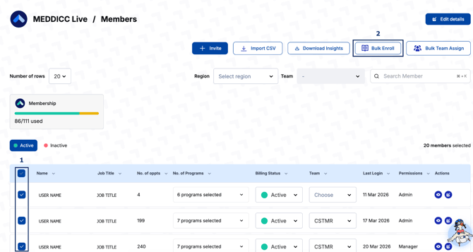3. Once selected, click Bulk Enroll at the top of the page.
